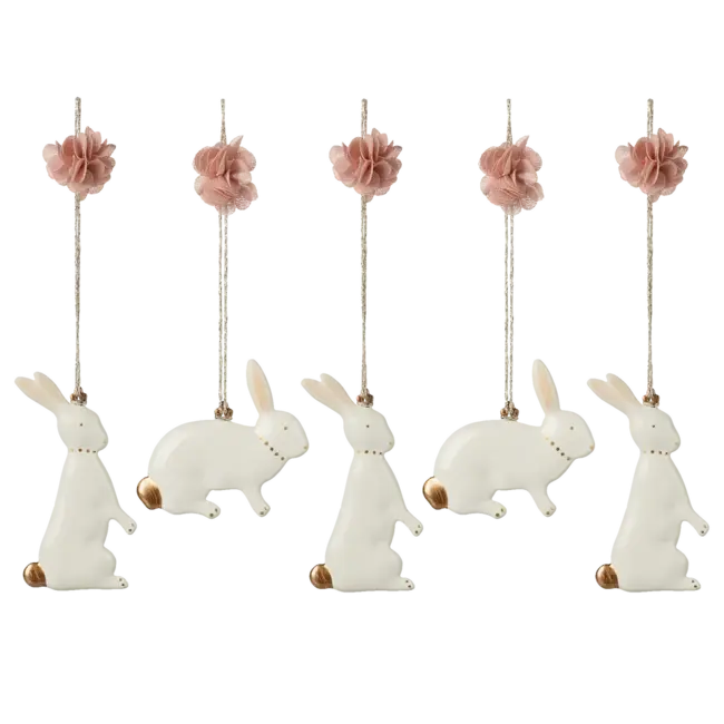 Pour une table ou une branche de Pâques pleine de charme, le coffret de 5 lapins de Pâques en métal signé Maileg incarne l’élégance des traditions revisitées. Chaque lapin est délicatement peint à la main, révélant des détails subtils qui font toute la singularité de ces ornements.
