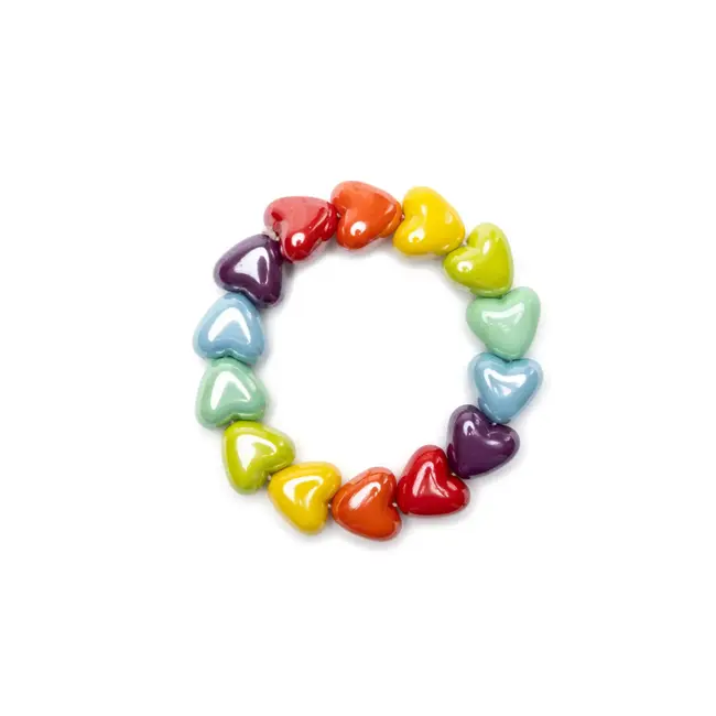 Décor : perles en forme de cœurs, couleurs arc-en-ciel