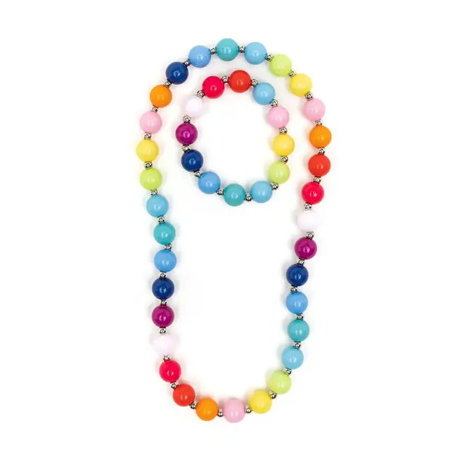 Pourquoi choisir une seule teinte quand on peut toutes les inviter à la fête ? L’ensemble collier et bracelet Beaded Bubblegum déborde d’énergie avec son spectre vibrant de perles multicolores. Imaginé par Great Pretenders, ce set de bijoux enfant apporte une touche joyeuse et expressive aux déguisements comme aux looks du quotidien, pour des instants placés sous le signe de la fantaisie.