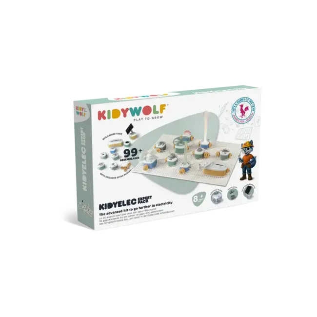 Avec KIDYELEC Expert, les enfants approfondissent leur découverte de l’électricité grâce à des montages plus poussés. Le coffret contient 18 blocs électroniques pour multiplier les expériences : allumer plusieurs LED, activer moteurs et hélices, tester différents types de circuits, comprendre les interrupteurs et explorer les réactions en chaîne.