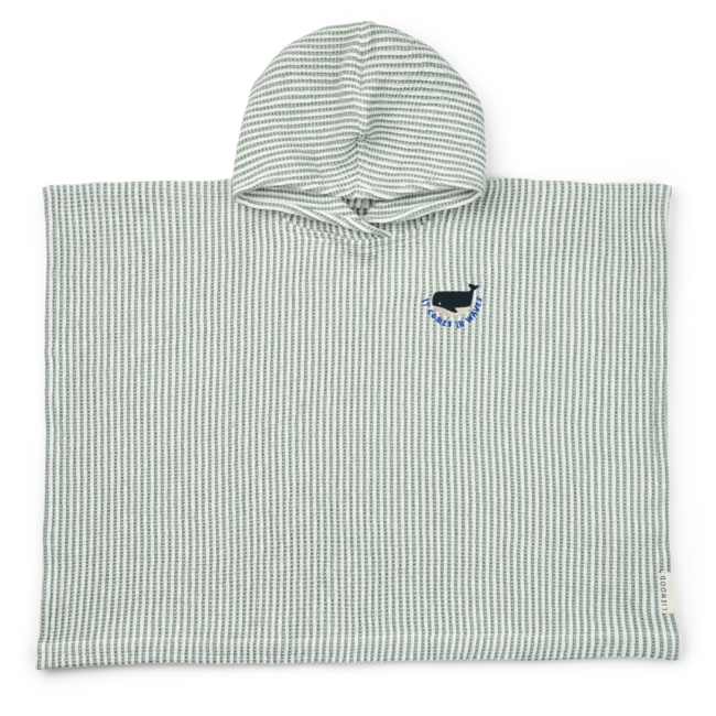 Après une baignade joyeuse, place au réconfort… Le poncho brodé Paco Stripe Peppermint Crème de la Crème Liewood enveloppe les enfants dans une douceur légère et apaisante.