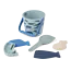 Contient un seau imprimé océan en silicone souple, une pelle et 4 emportes pièces baleines et poissons assortis.