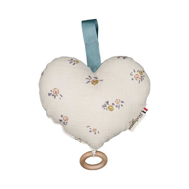 Petit par la taille, grand par l’émotion, le Cœur musical Angèle réchauffe les instants du quotidien. Ce coussin musical en forme de cœur, imaginé par Mellipou, diffuse une berceuse connue et rassurante que bébé peut déclencher lui-même en tirant sur la corde. Grâce à son velcro pratique, il s’accroche au lit, à la poussette ou au cosy, pour suivre les familles partout, sans jamais perdre le rythme.