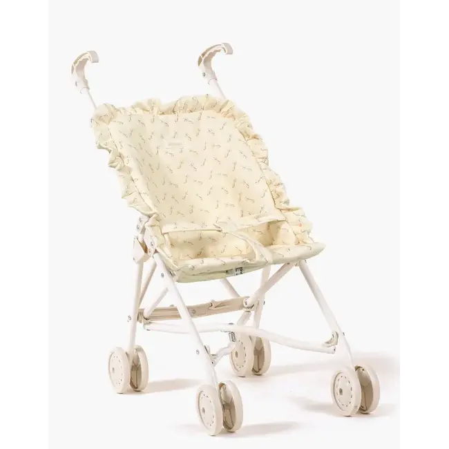 Avec son assise en gaze de coton délicatement ornée de volants, cette poussette poupée enfant allie élégance et confort. Son châssis crème complète ce design tout en douceur, signature de l’univers Minikane.