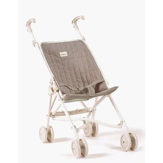 Son assise en gaze de coton quiltée, au motif rayé châtain, apporte un confort moelleux aux poupées tout en offrant un style délicat et authentique. Le châssis crème vient sublimer l’ensemble avec une touche lumineuse et raffinée.
